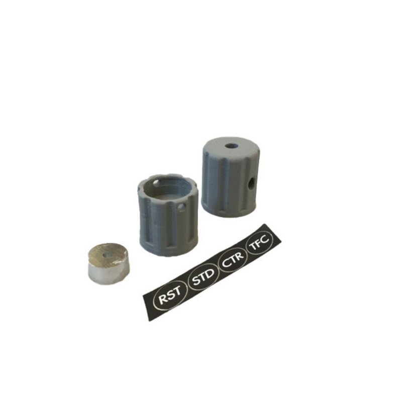 Sollten Sie die Knöpfe wie im Original nutzen wollen, legen wir Ihnen noch eine Reduzierhülse und einen Betätiger für den oberen Drehknopf und Knopf bei.